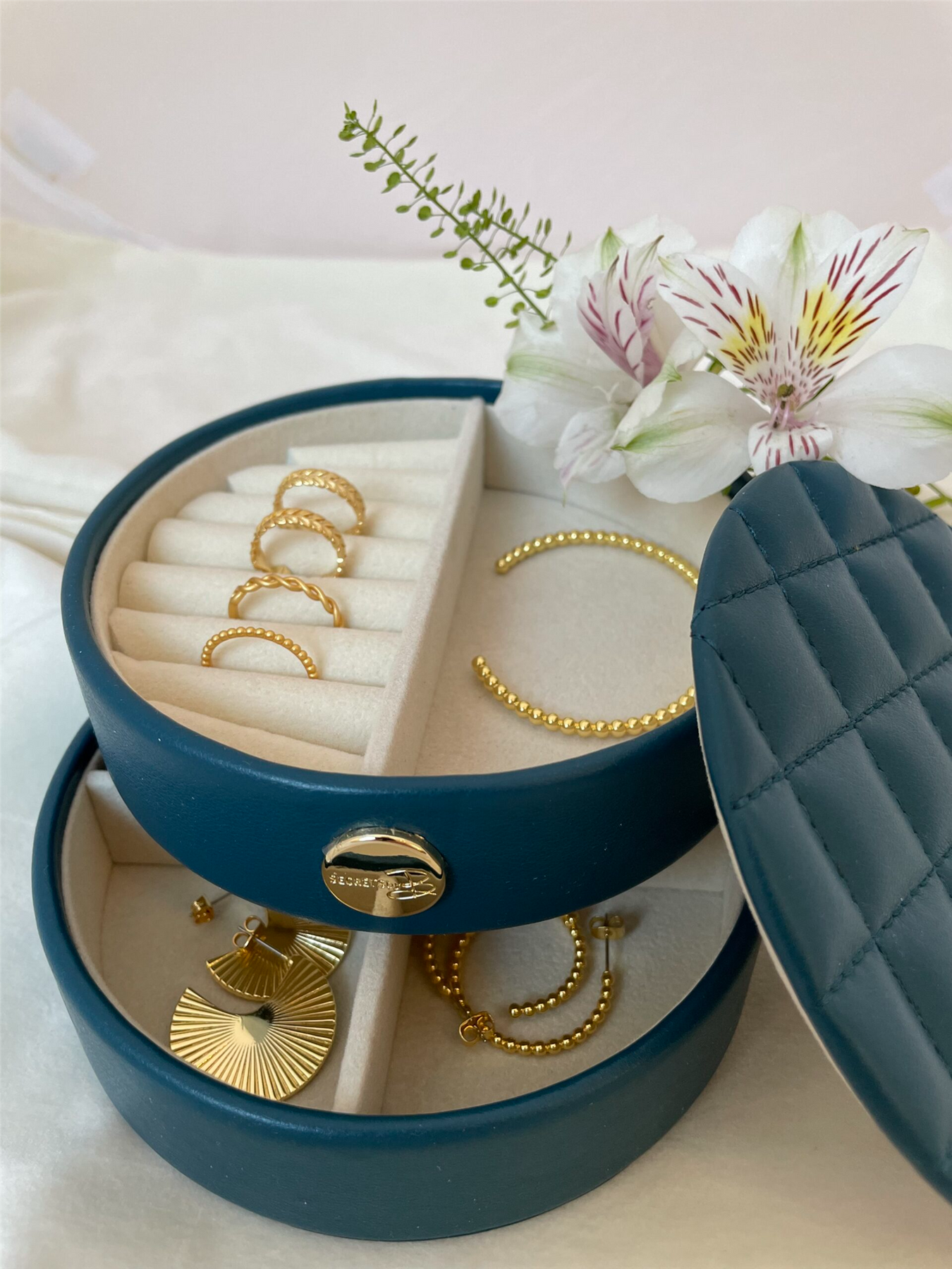 Praktisk oppbevaring av både kjeder, ringer, ørepynt og armbånd. Perfekt til toalettmappen eller hjemme på nattbordet!