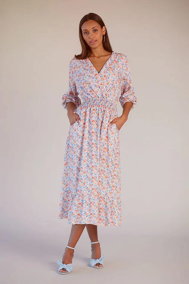 Den lekreste kjolen får du fra Floyd i deilig viskose, og med et rålekkert korallprint.