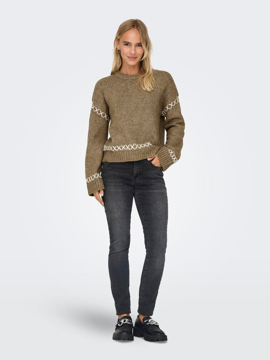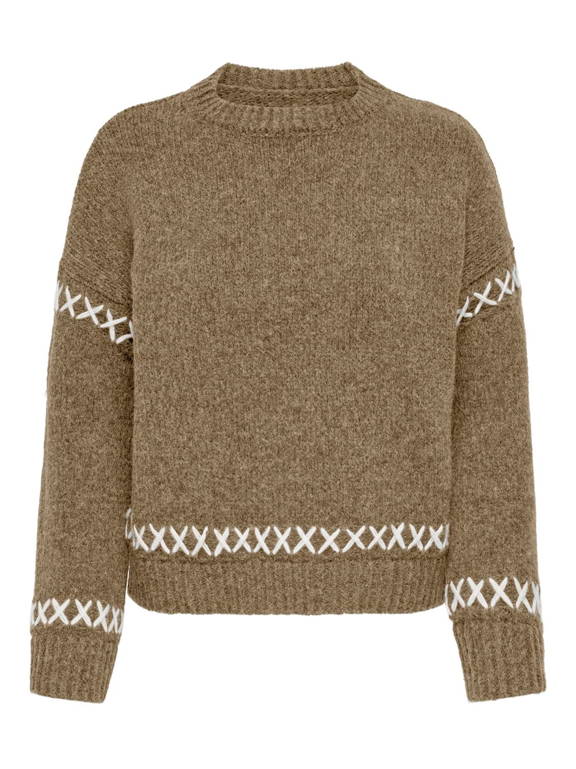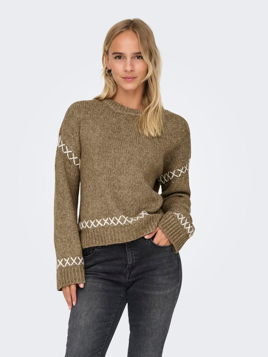 Top off your look with a timeless, feminine knit and add softness and warmth. - Detail Type : Knitted pullover - Neck : O-Neck - Sleeve : Long Sleeves (L/S) - Sleeves : Dropped shoulders - Cuffs : Ribbed cuffs - Extra details : Stitching detail - Fit : Regular Fit