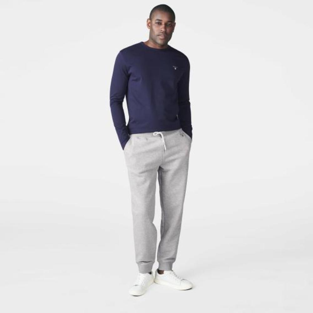 The Original Sweat pants i fargen Grey Melange fra GANT. En superdigg kosebukse for sene høstkvelder! Medium høyde i livet. Tapered legs. Elastisk midje med knyting To lommer i front og en bak. Strikk rundt ankelen. Brodert Gant logo på venstre lomme. Består av: 90% bomull og 10% polyester