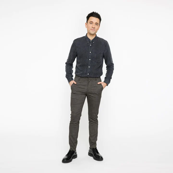 We designed these slim-fit tailored trousers with brown notes engulfed in a herringbone weave, and the result is a beautiful interplay between colour and form. They come with a few toned-down details, such as slant front pockets, concealed hookclosure, and zip fly. With their slim-without-sticking-to-your-legs-fit from top to bottom, Josh 314 Modest Brown Herringbone is both brisk, beautiful and comfortable, letting you stay comfortable all day while feeling playful.