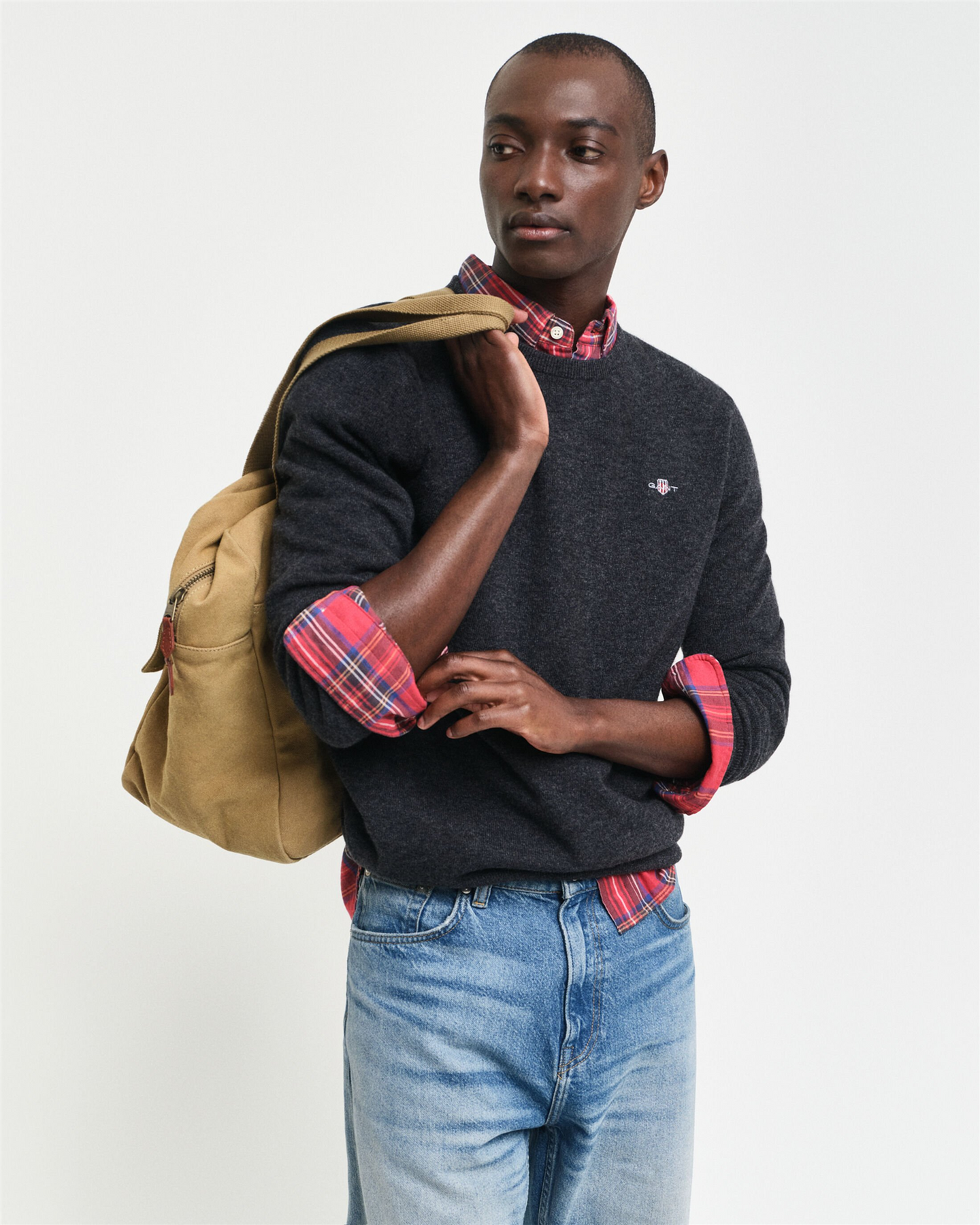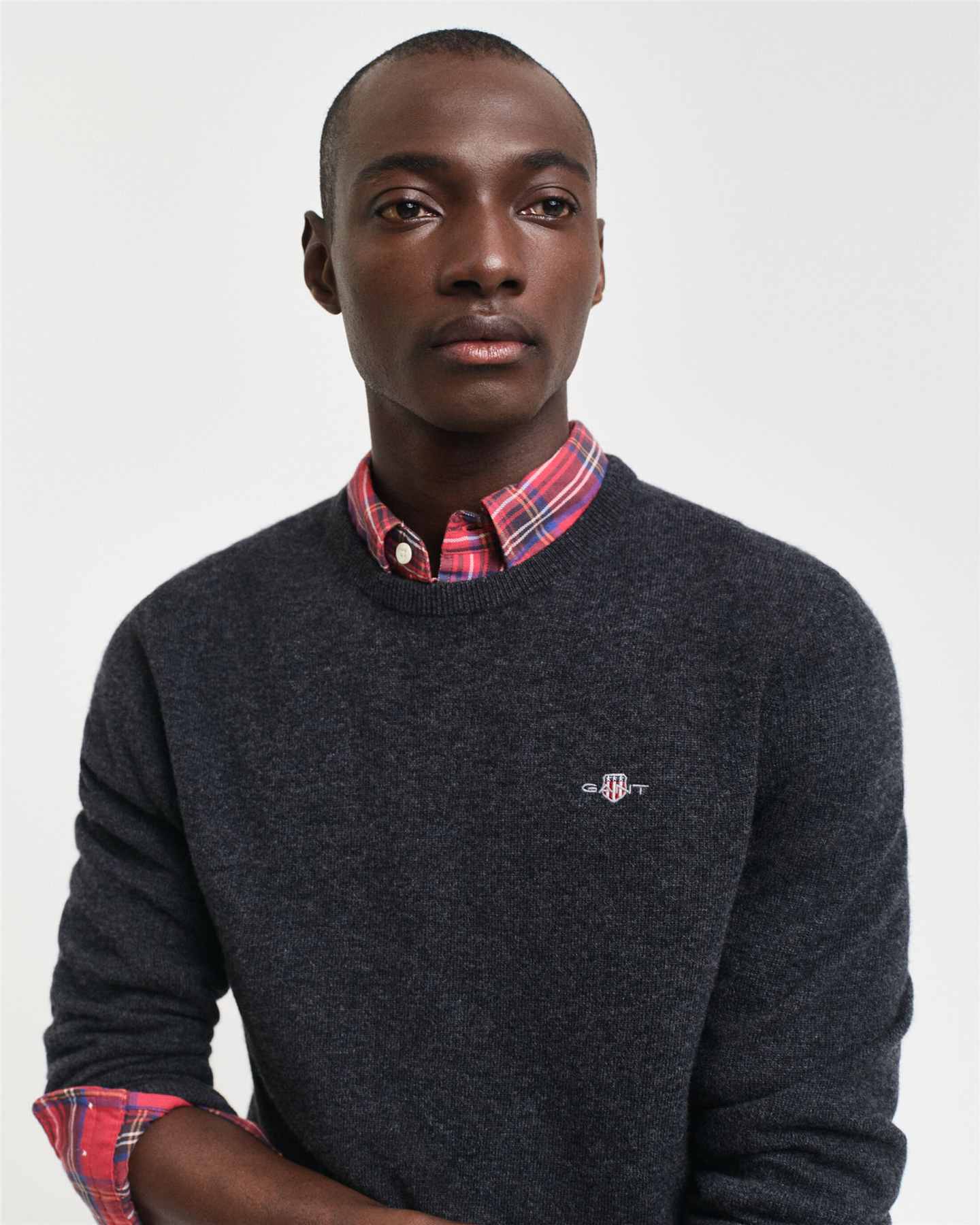 Genseren er strikket i ekstra fin lammeull for en supermyk følelse og er en hverdagsklassiker som kan brukes over skjorter eller som den er. Den har en normal passform, ensfarget strikket konstruksjon, klassisk rund hals, ribbede detaljer og vårt GANT-skjold brodert på brystet.