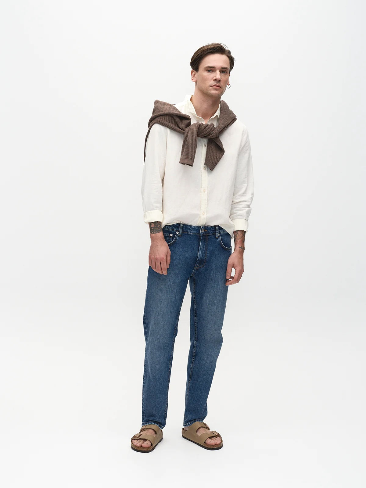 This style offers a slim thigh, a regular knee and a regular leg opening, which gives you a modern and classic look. Marc is perfect, whether you’re dressing up or going for a casual look.  These jeans are a part of our cooperation with  Wiser Wash