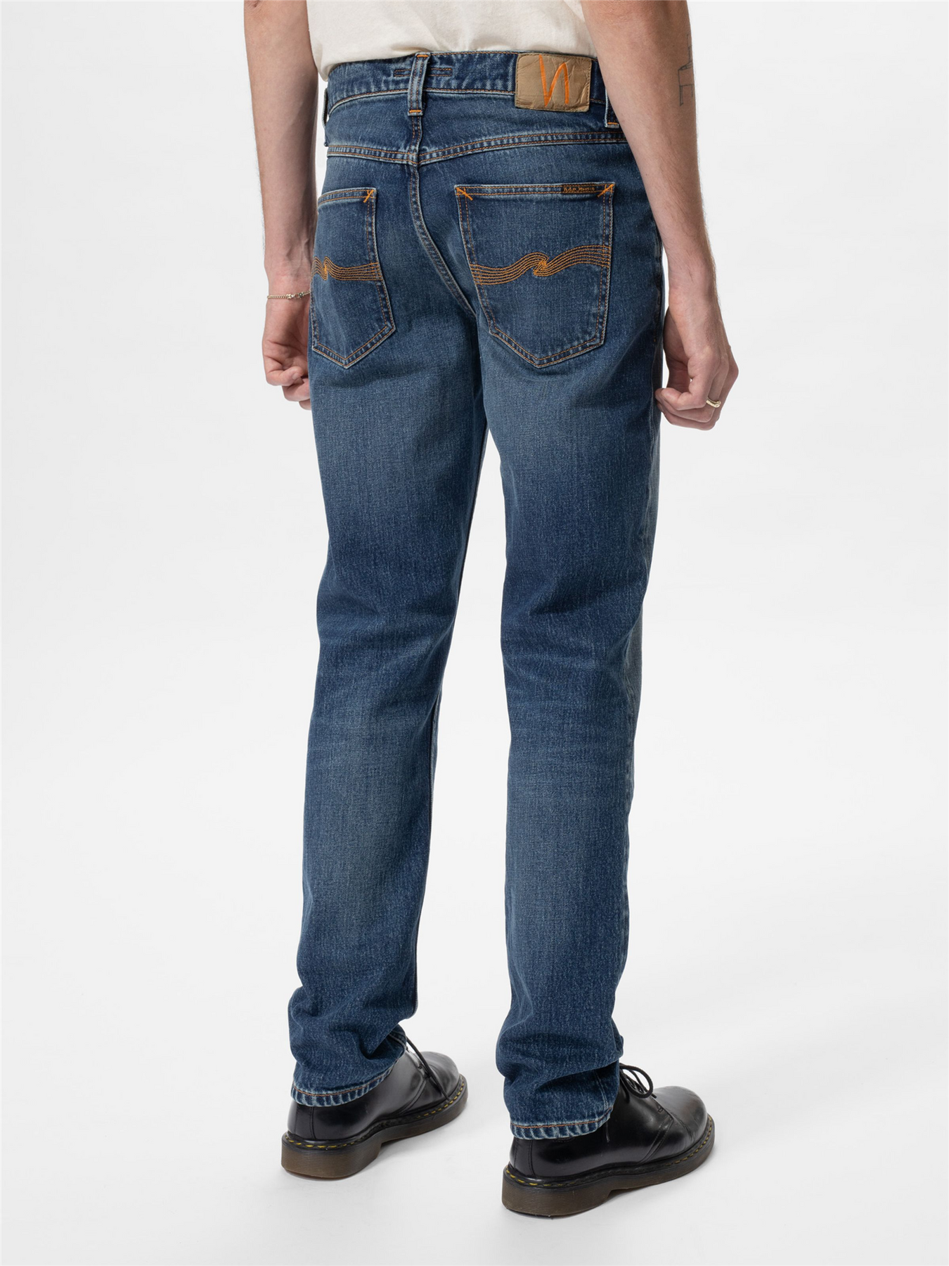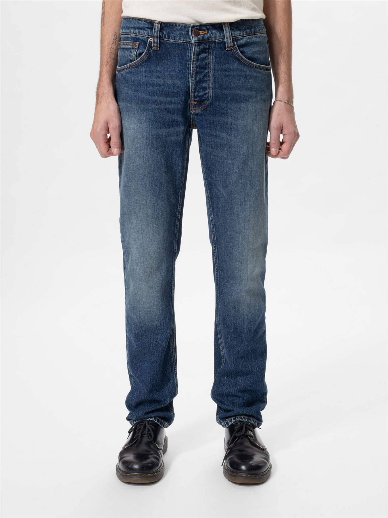 Slim fit jeans med smale ben i en mørkeblå vask med autentisk slitasje. Laget av bemerkelsesverdig teksturert stretchdenim, utstråler vasken en rik garnslubkarakter, som viser både salt og pepperkorn og en subtil kryssluke. Fremheving og litt varme skrubbsår gir et autentisk slitt utseende til disse mørkeblå skjønnhetene.