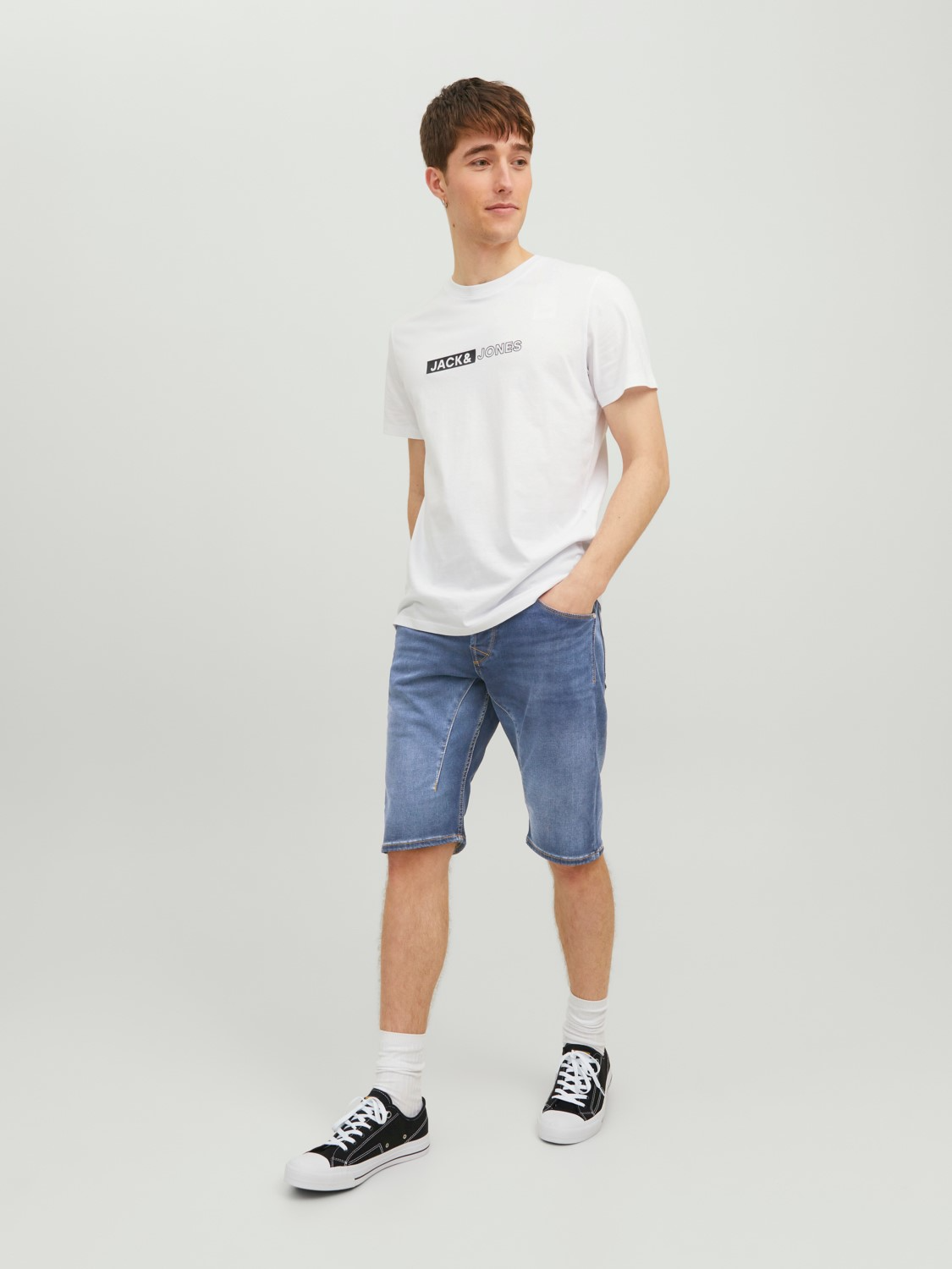 - Detail Type : Denim shorts - Fabric : Indigo Knit fuses the better of two worlds. Get the superb comfort of knitted sweat-wear and the authentic indigo look of denim. Try on these Indigo Knits and experience an intelligent jeans garment from JACK&JONES - Length/Size : Below knee - Waist/Rise : Regular rise - Closing/Fly : Button fly fastening - Concept : Our performance jeans are creafted with exceptional lightness, flexibility and a buttery softness. Designed for freedom and movement, they give you the best of both worlds by mixing athlesure with the authentic denim look - Pocket other : Coin pocket - Occasion/Styling : Casual and easy all day wear - Fit : Classic regular fit from rise and down to the leg opening. It's perfect for the guy who wants some extra room - Fit : Regular Fit