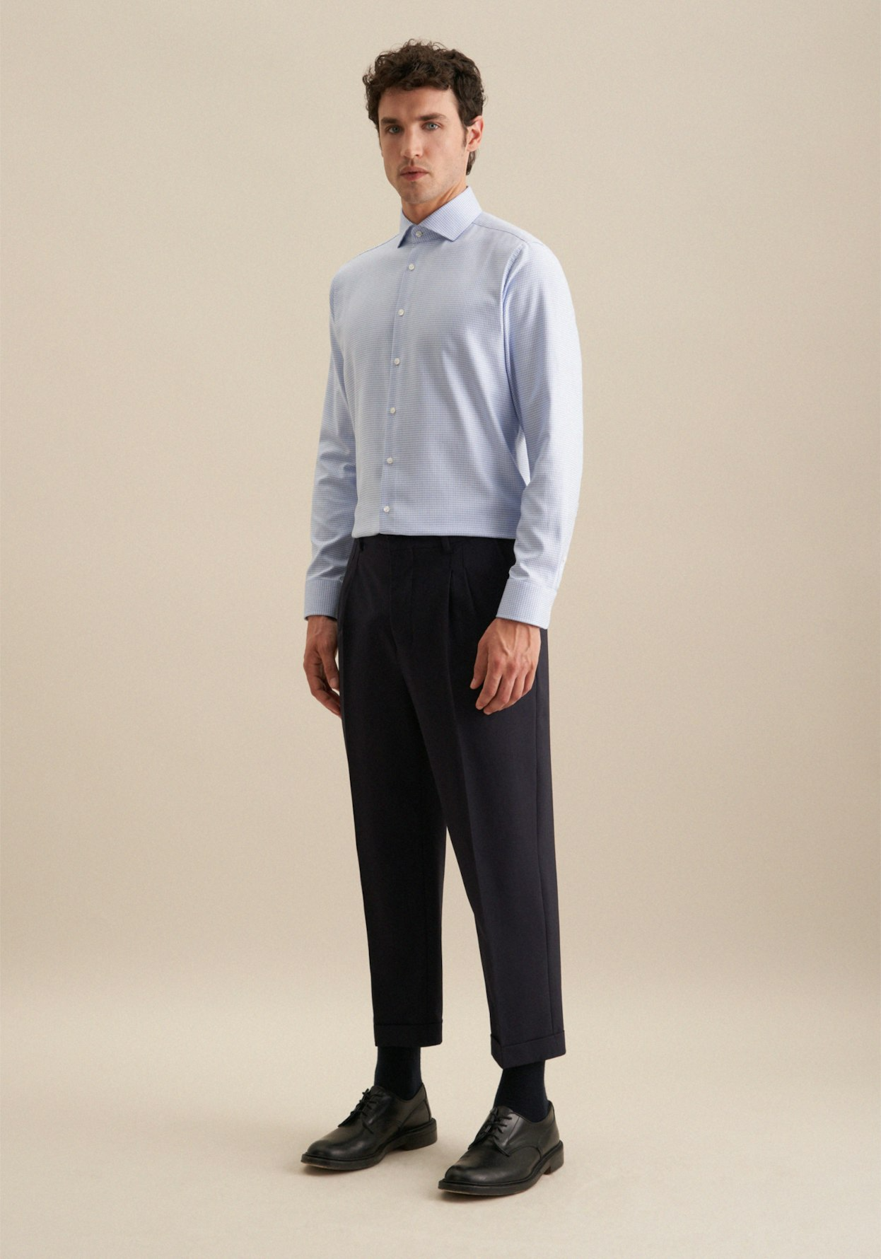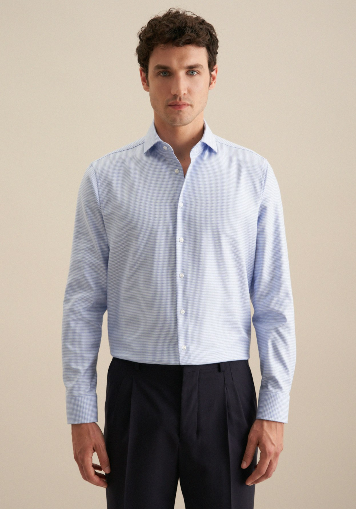 Complete any outfit with this must-have opaque business shirt from the "SMART CLASSICS" collection by Seidensticker - complete with masculine look. Whether you're working from home, going to an event or heading to the office, our smart business shirt goes with almost anything. Our structure fabric made from 100% cotton is beautifully finished, making it the perfect fabric for your exclusive outfits. Our regular fit is casual, comfortable and not too tight. Your new business shirt is both elegant and fashionable thanks to its structure pattern. This business shirt embodies timeless elegance with a modern touch. Your new long-sleeve business shirt is the perfect choice for anyone who loves elegant looks. It also has adjustable cuffs. Plus a kent collar shows off your business credentials. We don't shy away from our social responsibility: this business shirt has been made in accordance with our own high standards relating to sustainable cultivation of raw materials and responsible production. What's more, it also comes in plastic-free packaging.