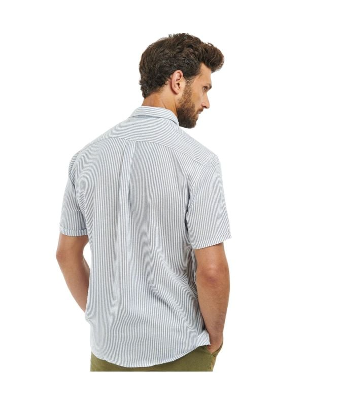 The Barbour Deerpark Striped Short-Sleeved Shirt features a contemporary take on a classic design, making it suitable for both casual and semiformal occasions. It consists of soft and breathable fabric, lyocell and linen. It has a timeless design. With a regular fit. The short-sleeved shape is ideal for warmer weather, providing a relaxed yet elegant look. Barbour's signature logo is on the chest pocket.