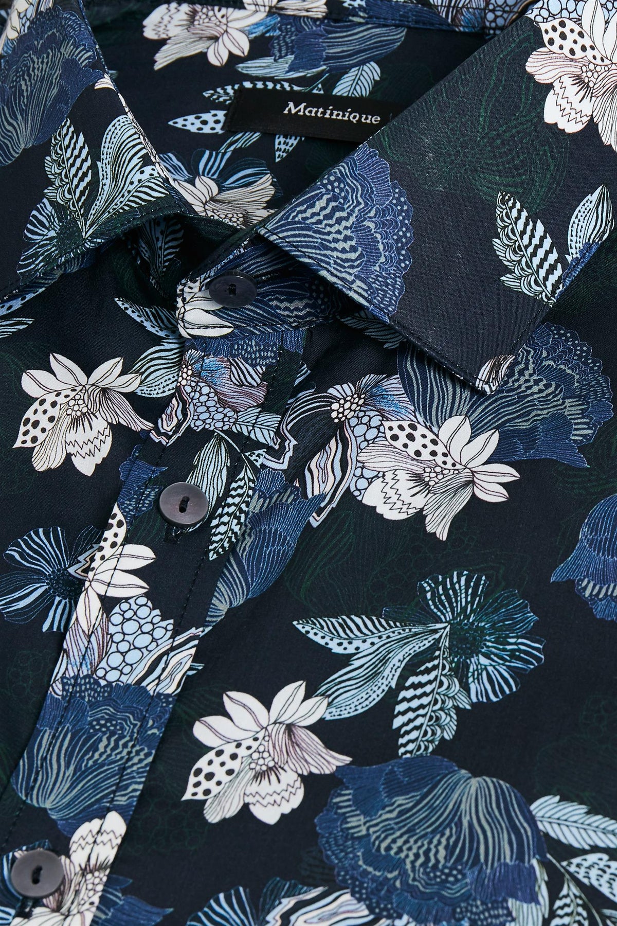 Mønstret skjorte fra Matinique. Modern fit med cut-away krage. Knapper ton i ton foran samt i mansjetten.