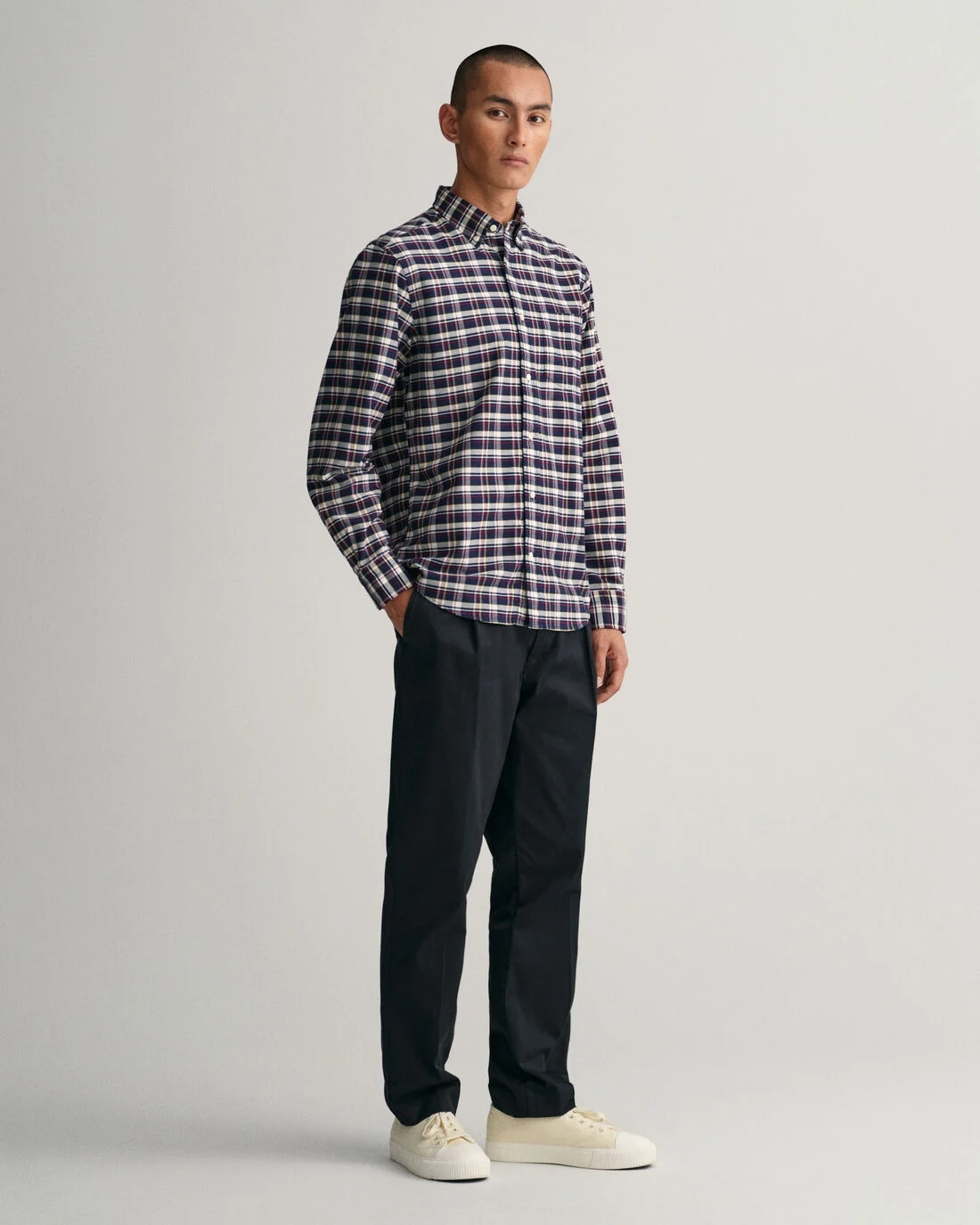 Featuring a seasonal yarn-dyed check on a crisp cotton oxford, this regular fit shirt bears all our signature details – the button-down collar, chest pocket, and a box pleat with a locker loop at the back.
