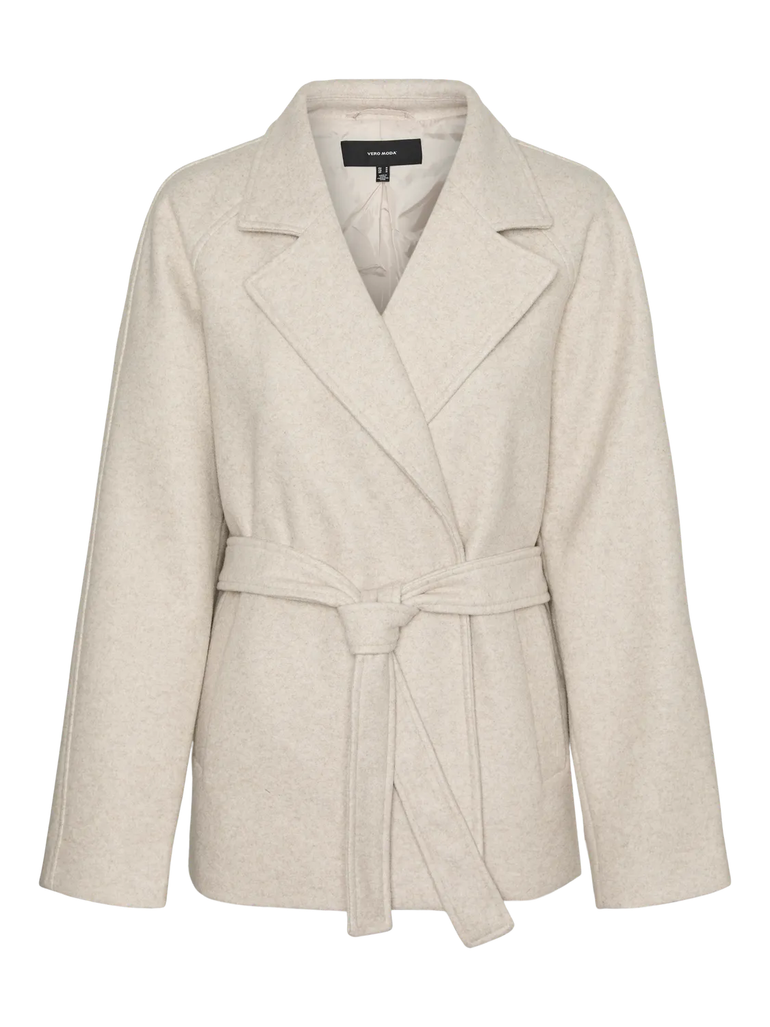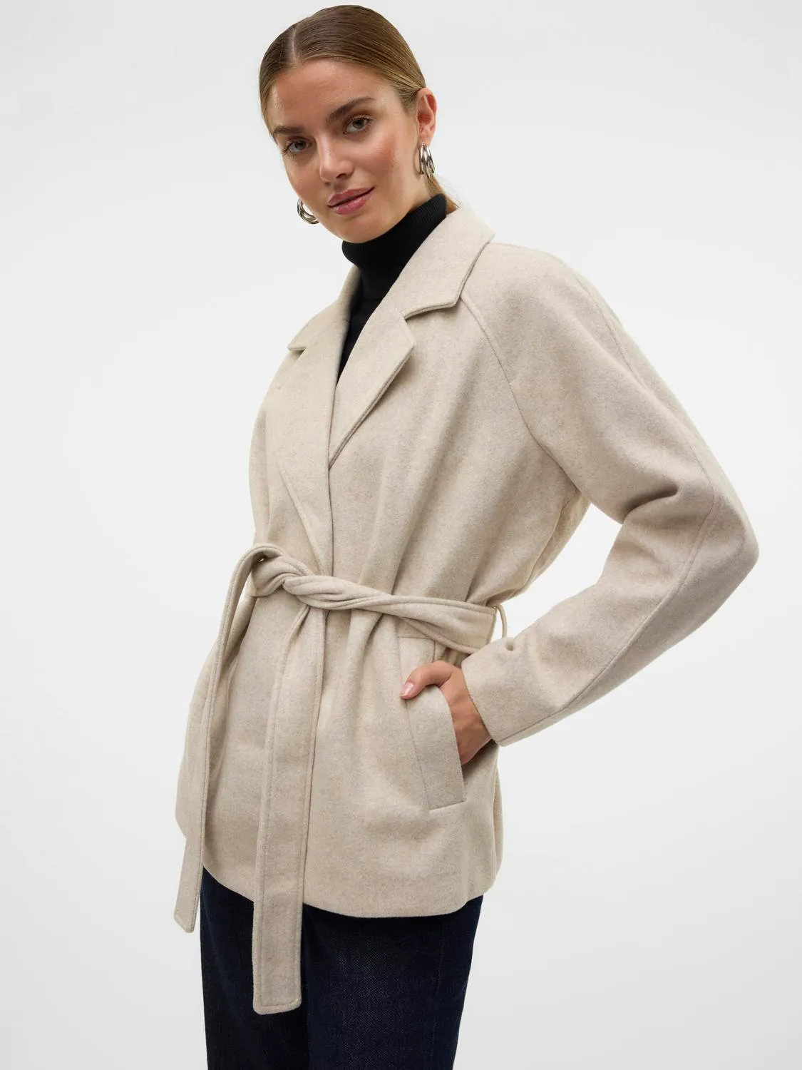 Outerwear can easily be both practical and beautifully designed at the same time. With this jacket you can uplift your look in no time. The elegant design creates a timeless look, that goes with anything. Add an elegant dress and a pair of heels for a stunning occasion look. - Product Type : Jacket - Neck : Reverse - Sleeve : Long Sleeves (L/S) - Closing : Belt fastening - Pockets : Side pockets - Length/Size : Short