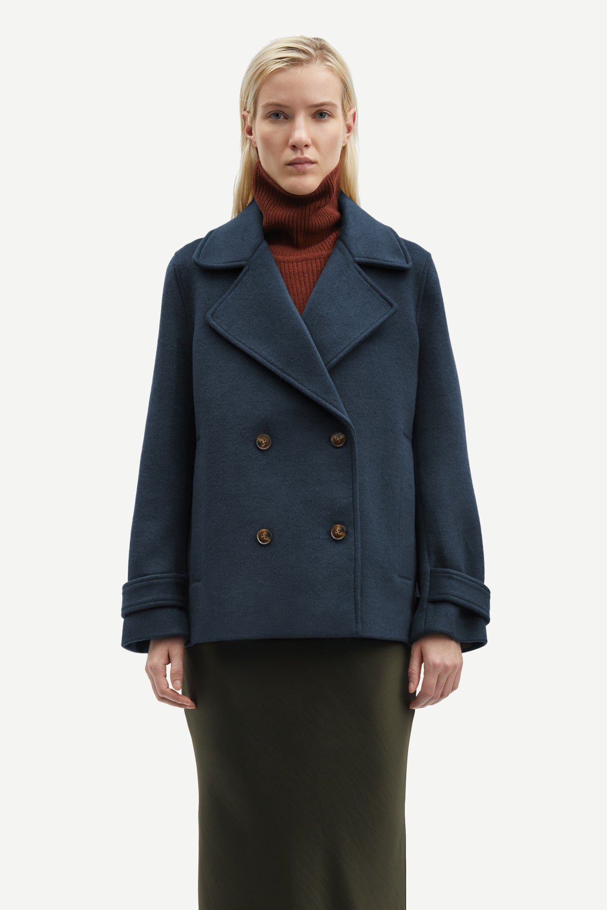 Jacket with a regular fit. Double-breasted button closure on the front. Collar with notched lapels. Welt pockets on the front and buttoned welt pocket on the inside. Main material made from a blend with wool and recycled polyester. This product is GRS certified. Each stage of the supply chain has met strict social, environmental, and chemical requirements.