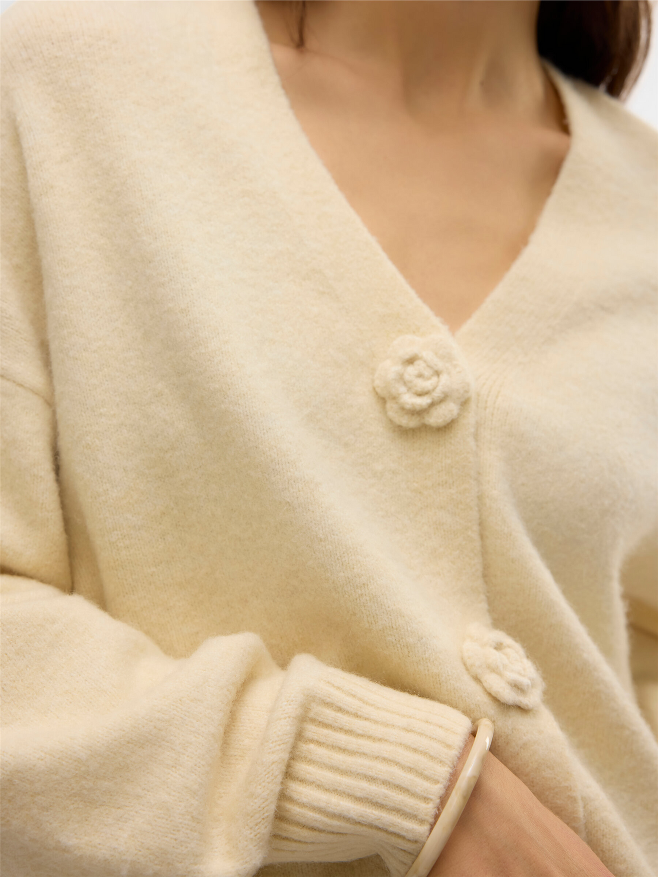 As a cute layer or as a chic, knitted jacket this heavy knitted cardigan is the perfect addition to your wardrobe. An easy and cosy style that keeps you cosy and warm. Wear it as an extra layer to your already smart outfit, or to tone down your dressy look by adding comfort to it.