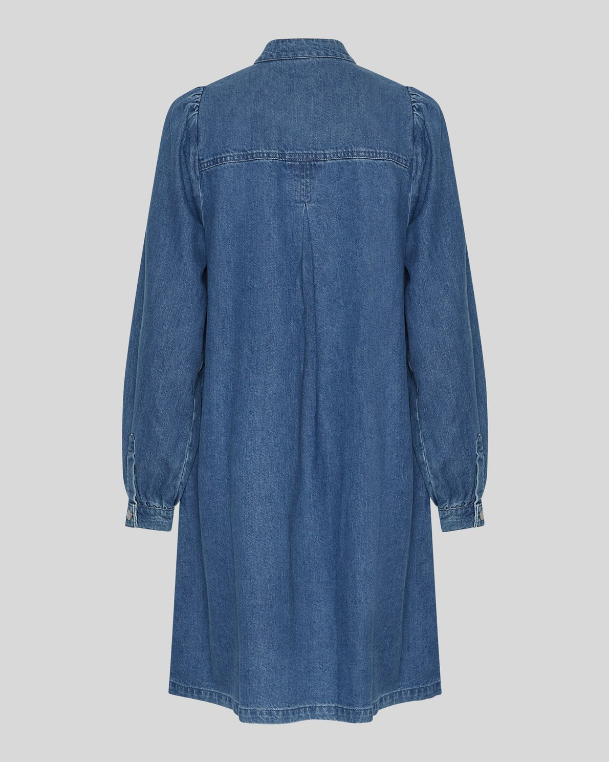 MSCHElena Shirt Dress fra MSCH Copenhagen er en allsidig skjortekjole med en A-formet silhuett som gir et avslappet og moderne uttrykk. Den har lange puffede ermer, en mandarin-krage og en hel knappestolpe i front. To sidelommer tilfører både funksjonalitet og stil. Denne kjolen kan enkelt styles på ulike måter, for eksempel ved å legge til et belte i livet for en mer feminin silhuett. MSCHElena Shirt Dress fra MSCH Copenhagen er et tidløst og stilfullt tillegg til garderoben.