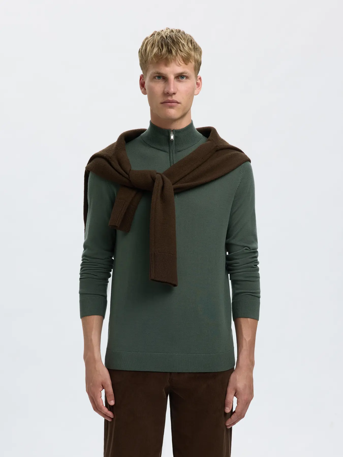 En allsidig garderobefavoritt designet for både komfort og klassisk eleganse. Denne strikkede pulloveren kombinerer funksjonalitet og raffinement med en halv glidelås, høy hals og ribbestrikkede mansjetter – perfekt for lag-på-lag-styling eller som et selvstendig statement-plagg.