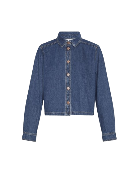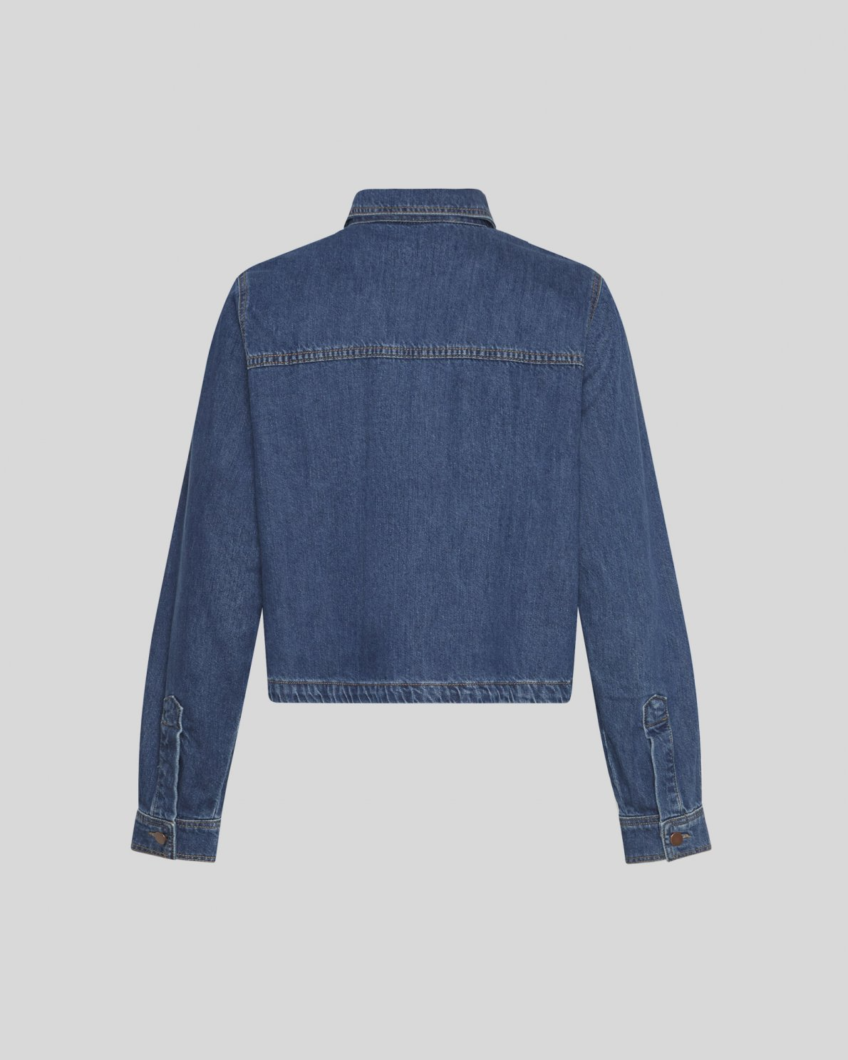 Elena Shirt er en trendy, kort denimskjorte i en klassisk jeans farge. Skjorten har en tidløs krage, knapper langs fronten og lange ermer for en allsidig stil. Bruk den lukket som en klassisk skjorte eller åpen som en lett jakke for en mer avslappet look. Materiale: 100% økologisk bomull