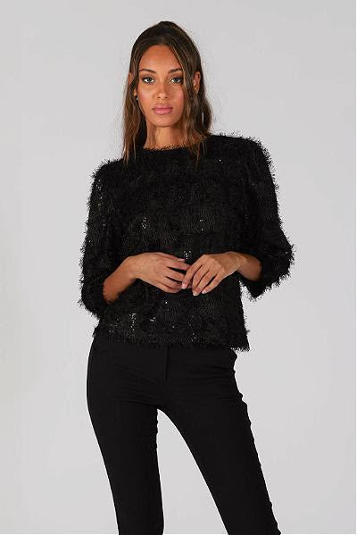 Denne fluffy toppen tilfører litt ekstra glam til enhver garderobe. Med en flatterende passform og et moderne snitt, kan den enkelt styles opp med både skjørt, bukser eller under en blazer for en komplett look. Perfekt for deg som ønsker å skinne litt ekstra på neste fest!