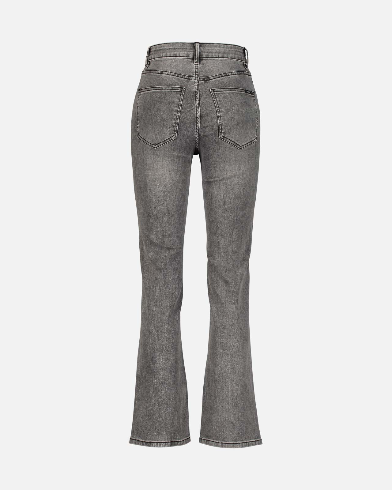 Myk jeans med ekstra høyt liv og en rett passform. Baklommene er plassert midt på rumpa. Den har en flatterende V-formet yoke (søm over rumpa). Den er i et mykt stoff med veldig god stretch og en melert/ vasket look.