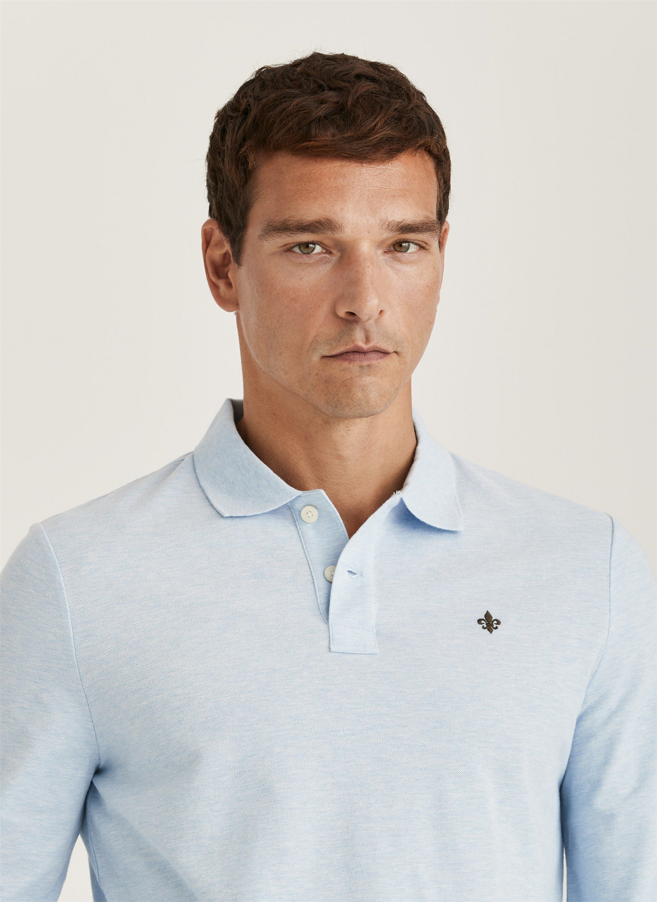 Polo til herre fra Morris Stockholm. Camden LS Polo kombinerer komfort og eleganse med tidløse detaljer. Denne poloskjorten i bomull har en klassisk polokrage med to knapper og den ikoniske Morris-liljen brodert på brystet.