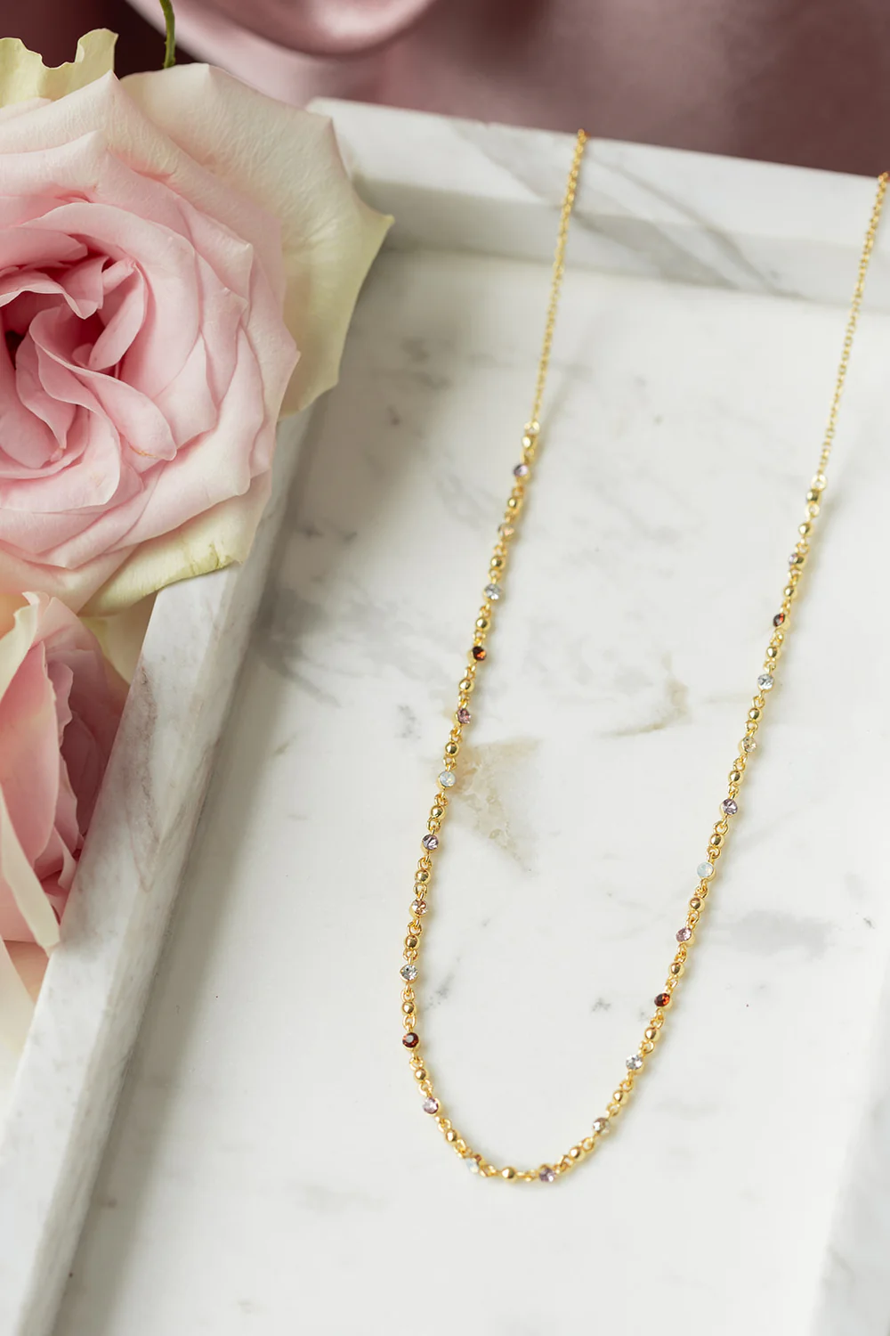 Nydelig kjede med små swarovski stener vi vakre duse farger. Perfekt til både hverdags og fest!