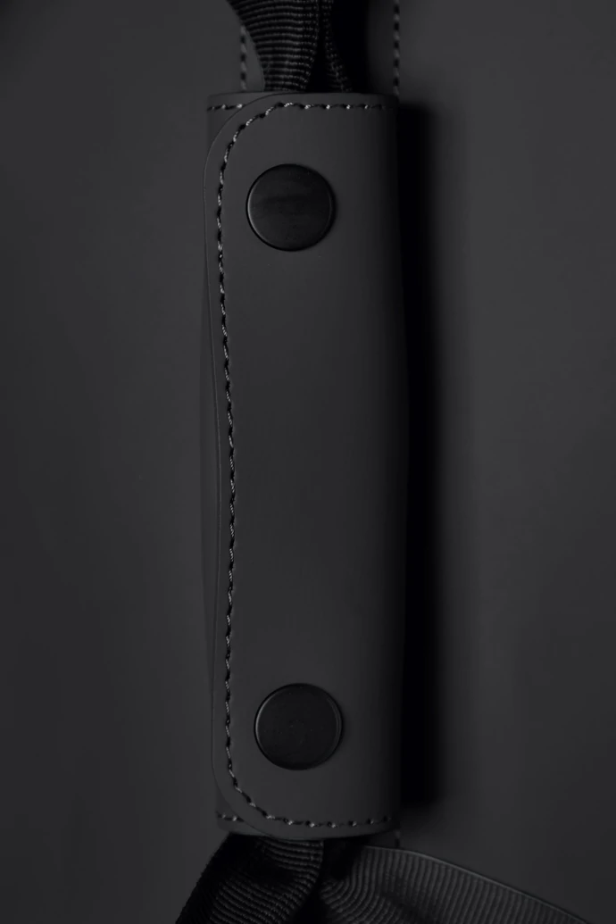 Weekend Bag Small is Rains’ interpretation of a contemporary gym or overnight bag. This essential Rains bag features a single main compartment, webbed carry handles, a detachable shoulder strap, and adjustable lock slider buckles on the sides. Weekend Bag Small is cut from Rains’ signature waterproof PU coated fabric. This waterproof duffel bag is finished with coated zip and matte hardware.