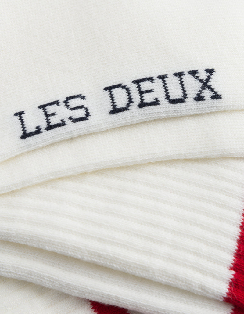 Enkelt dekorert med tekstlogo på leggen og sålen. Våre Les Deux-sokker er laget i en økologisk bomullsblanding for pusteegenskaper og komfort, ribbestrikket for stretch.