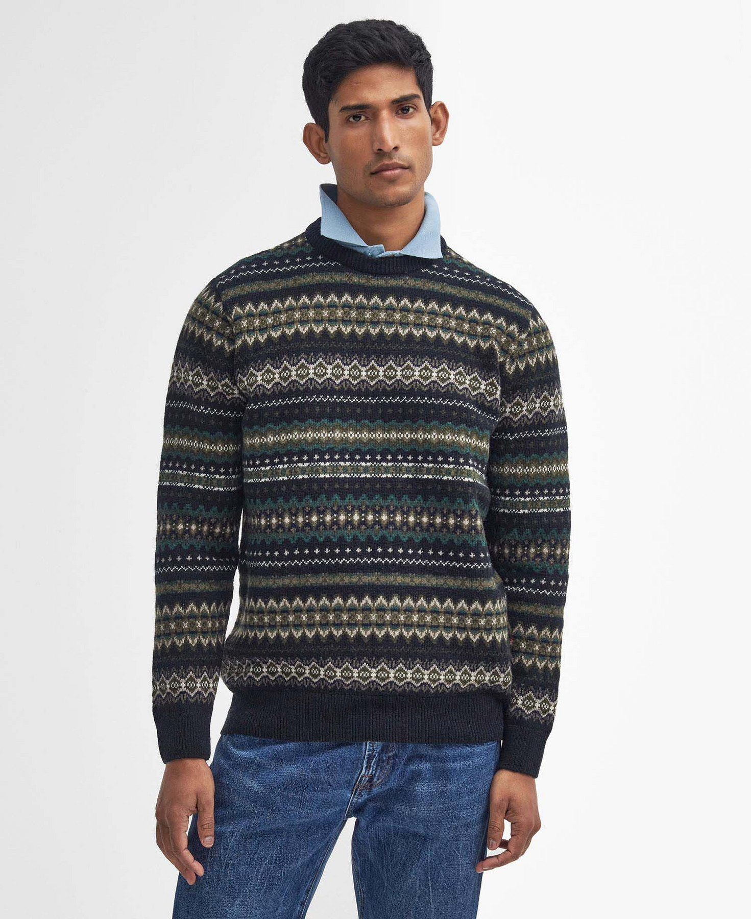 Gi garderoben din et løft med denne stilfulle genseren fra Barbour! Den er laget i myk, 100 % ull og prydet med et tidløst Tyrolermønster. Genseren har rund hals og ribbestrikkede kanter som gir en behagelig passform. Perfekt å kombinere med jeans og et par sneakers for en avslappet, men elegant look.